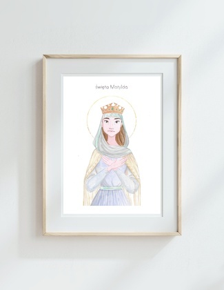 Matylda Kopia ilustracji akwarelowej wybranego Świętego, wydrukowana na wysokiej jakości papierze w formacie A5.