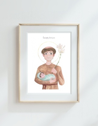 Antoni Padewski - Kopia ilustracji akwarelowej wybranego Świętego, wydrukowana na wysokiej jakości papierze w formacie A5.