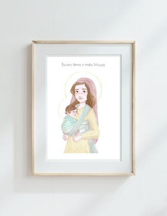 Zuzanna Kopia ilustracji akwarelowej wybranego Świętego, wydrukowana na wysokiej jakości papierze w formacie A5.